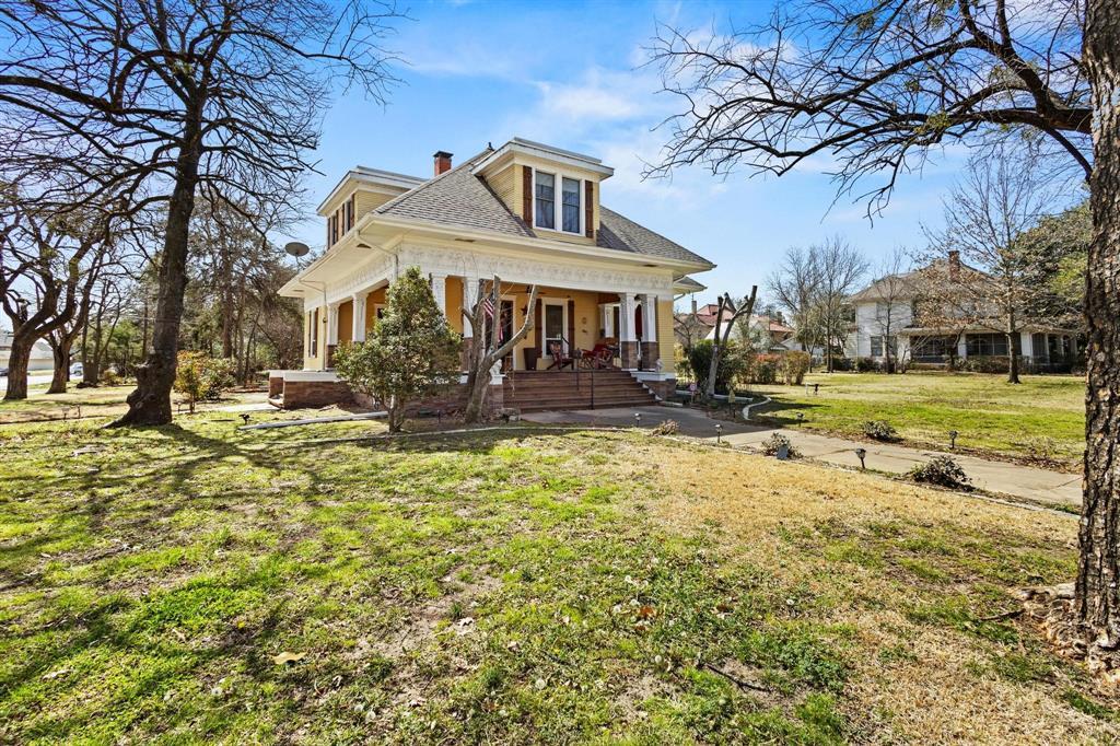 Step into a piece of history, located in the heart of Denison. This updated 1928 home features 4 bedrooms, 2 full baths and 1 half bath and 3 fireplaces, and a basement. Home has classical architectural details that showcase the home's character, while thoughtful updates have enhanced its comfort and functionality. Upgrades include the master bath, new flooring upstairs and in the kitchen. Butcher block on the island, farmhouse kitchen sink added. Relaced most windows downstairs but kept a couple of the older ones to keep its charm. Downstairs bedroom completely redone. Piping and electrical repaired. Water sprinklers fixed. Relax outside on the large, covered front porch. Outside includes a shed and what could be turned into a small apartment if fixed up. Fance gate was widened to allow riding lawnmower through. Washer and dryer will stay. Buyer and buyers agent to verify all information. Home is being sold as-is. BACK ON THE MARKET AT NO FAULT OF THE SELLERS!!