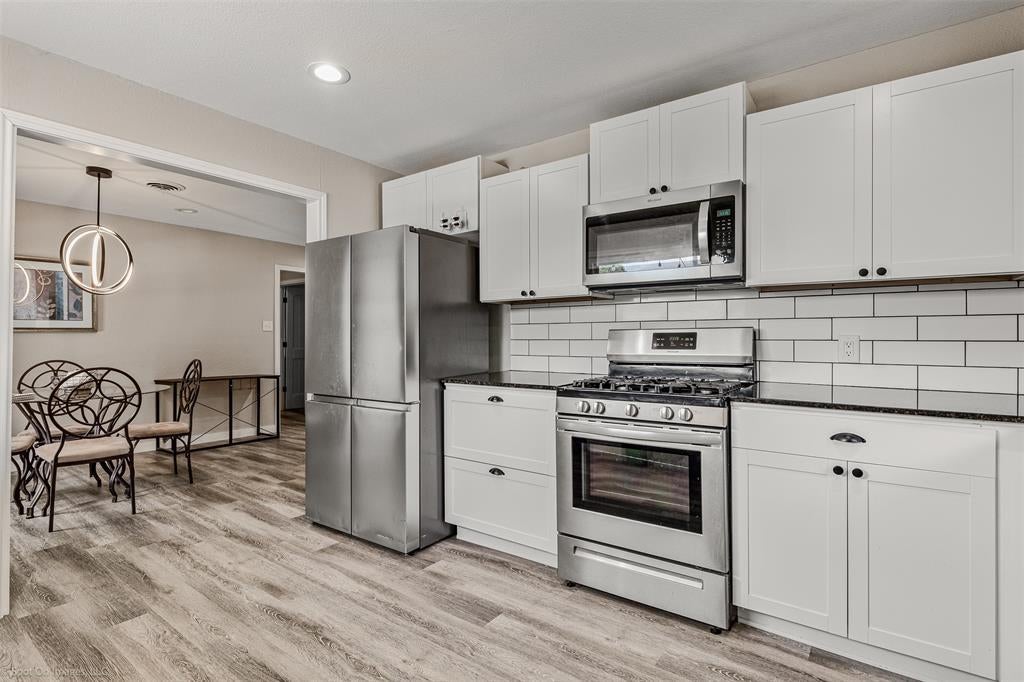Modern charm is what you will find in this fully renovated 4 bedroom 2 bath home situated on a corner lot in West Sherman! Spacious open floor plan with plenty of natural light and beautiful vinyl floors throughout. This darling kitchen features classic white subway tile, shaker style cabinetry, granite countertops and stunning stainless steel appliances with space for a breakfast area. Directly off of the kitchen find your large backyard, featuring a courtyard patio area, outfitted with dreamy string lights which makes it perfect for entertaining! You will enter the home into a spacious combined living and dining area with the Master bedroom with ensuite and laundry off to your left. The remaining 3 bedrooms and full bath are just down the hall. This home is the perfect place to relax and enjoy your family and friends! Call your favorite Realtor for a private showing today!
